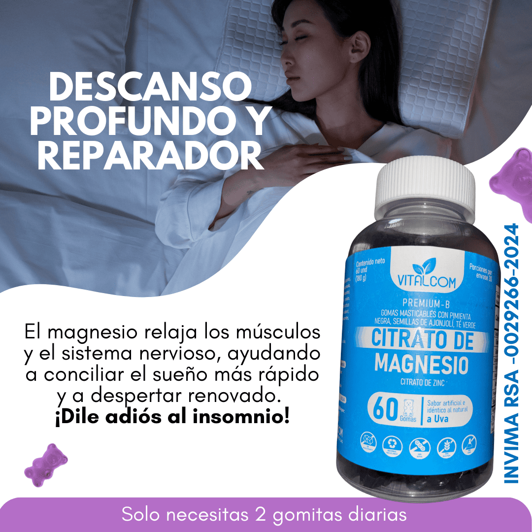 Citrato de magnesio + zinc en gummies. Apoya concentración y energía estable cada día. 60 gummies para un hábito simple y consistente.